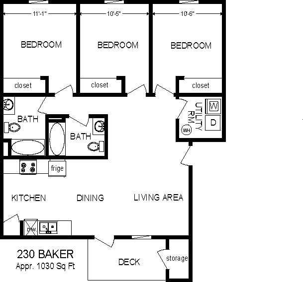 3 Bedroom 2 Bath. 12 Month rate of $690.00 per month June through July and $1,380.00 per month August through May or a 10 month rate of $1,518.00 per month August through May. A 12-unit complex located near UI Rec Center & Palouse Mall, deck with additional storage, internet & cable & satellite dish ready, off-street parking. 1030 sq. ft. Unit is located on the second level. Dishwasher, Refrigerator, Range, Washer\Dryer, WSG is included in the rent. No Pets. No smoking.